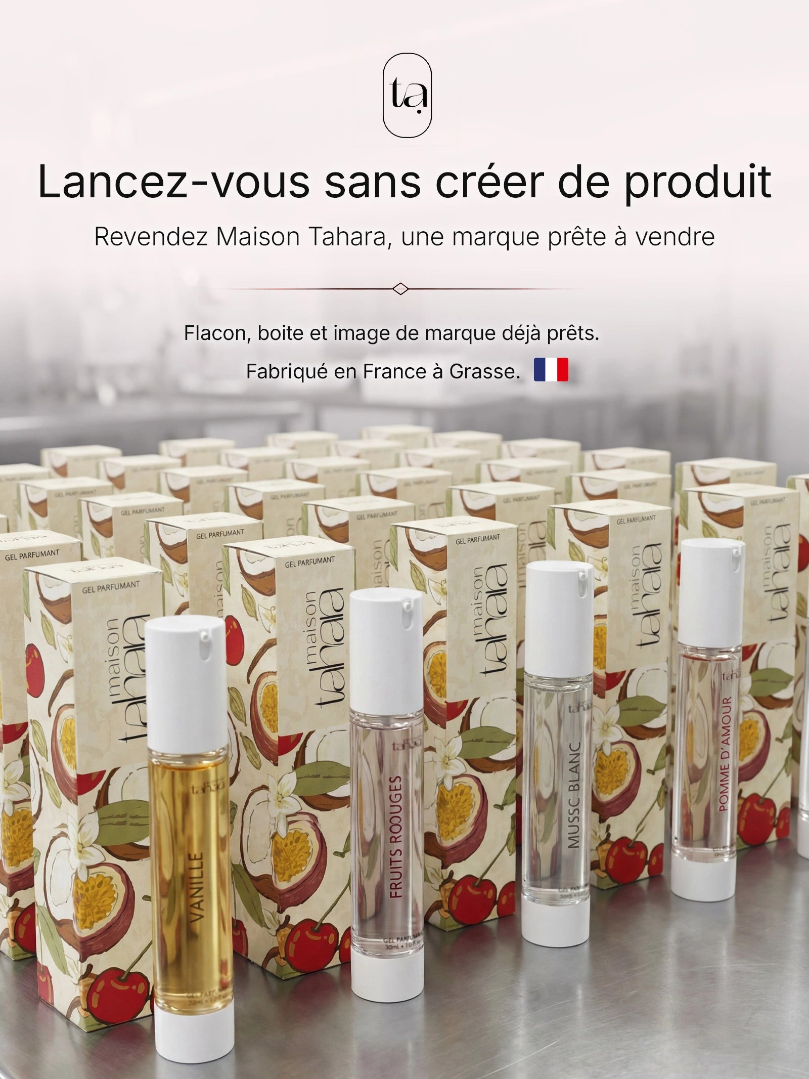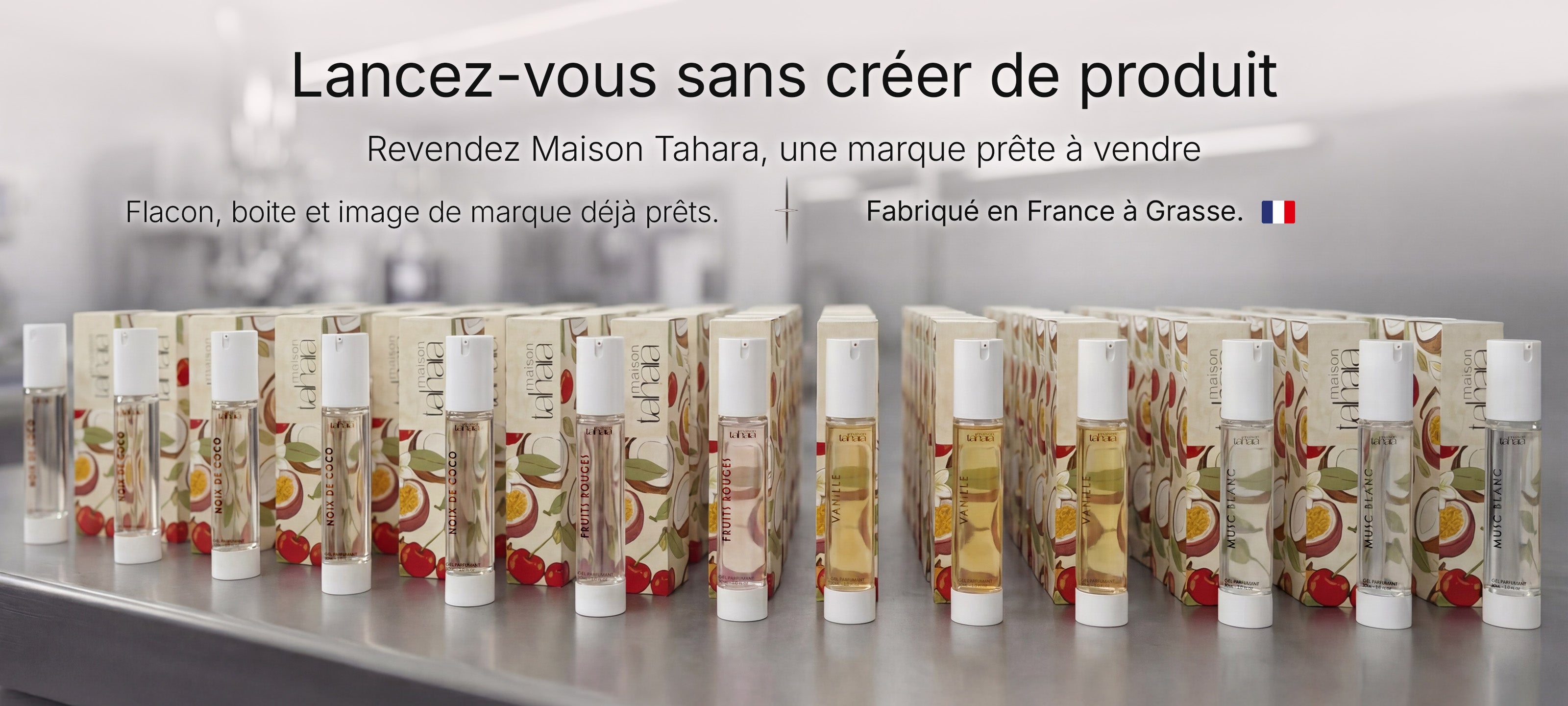 Nous proposons la revente directe de la marque Maison Tahara, avec ses packagings, ses formules et son univers déjà construits, destinée exclusivement à un usage professionnel.